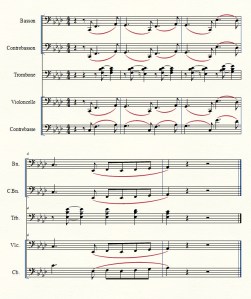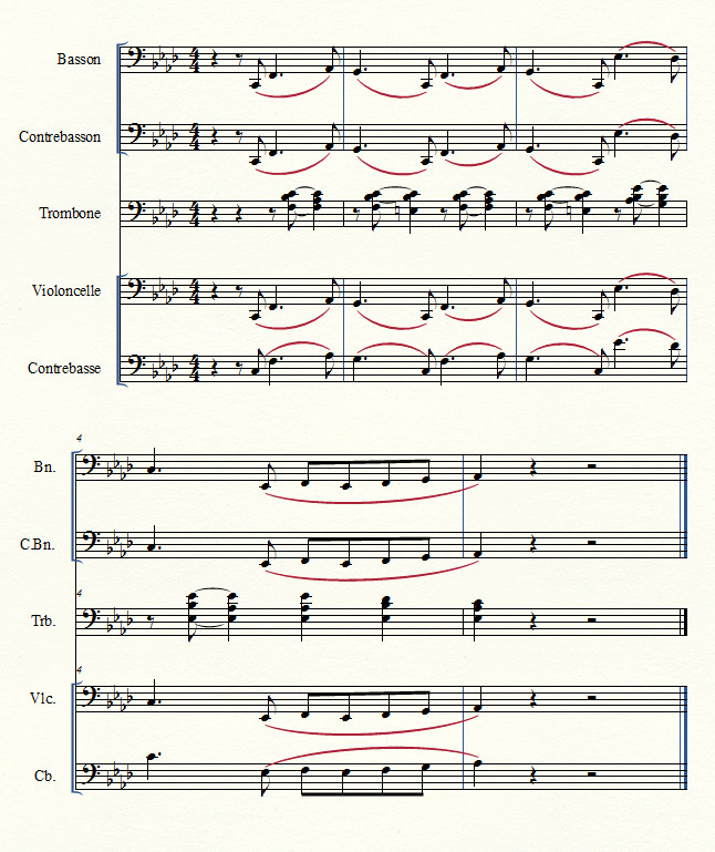 Un mélange des timbres les plus graves de l’orchestre (contrebasses, violoncelles, contrebasson et basson) sur un motif pesant de marche lente, soutenu par des accords aux trombones. La musique est ici lourde de sens, inquiétante et caverneuse, dans la tonalité de fa mineur.