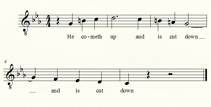 And is cut down like a flower (et est fauché comme une fleur): ligne mélodique descendante.